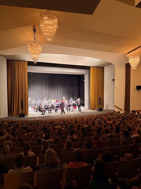 Besonders eindrucksvoll war die Vorstellung der einzelnen Instrumente: Reihum erklärten und spielten die Musikerinnen und Musiker ihre Instrumente vor – von kraftvollen Blechbläsern bis zu fein klingenden Holzblasinstrumenten. Die jungen Zuhörerinnen und Zuhörer reagierten neugierig, spontan und mit hörbarer Freude. Der direkte Austausch machte das Konzert zu einem lebendigen Erlebnis, bei dem Musik nicht nur gehört, sondern intensiv erlebt wurde.