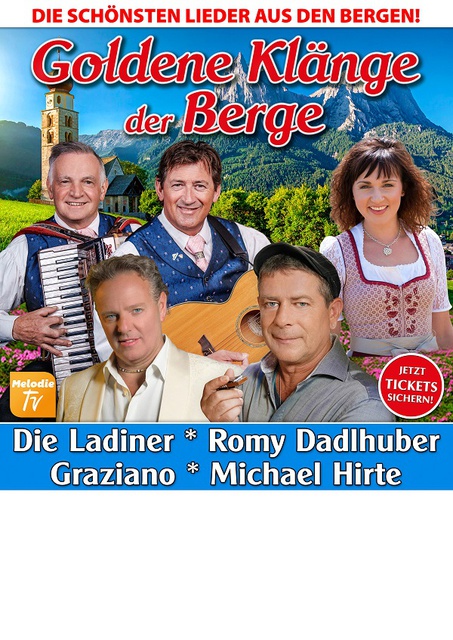 Goldene Klänge der Berge bringt die schönsten Melodien aus den Bergen zu ihnen auf die Bühne. Dazu geben sich beliebte Stars der volkstümlichen Musik ein großes musikalisches Stelldichein.